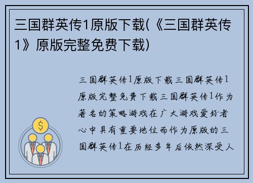 三国群英传1原版下载(《三国群英传1》原版完整免费下载)